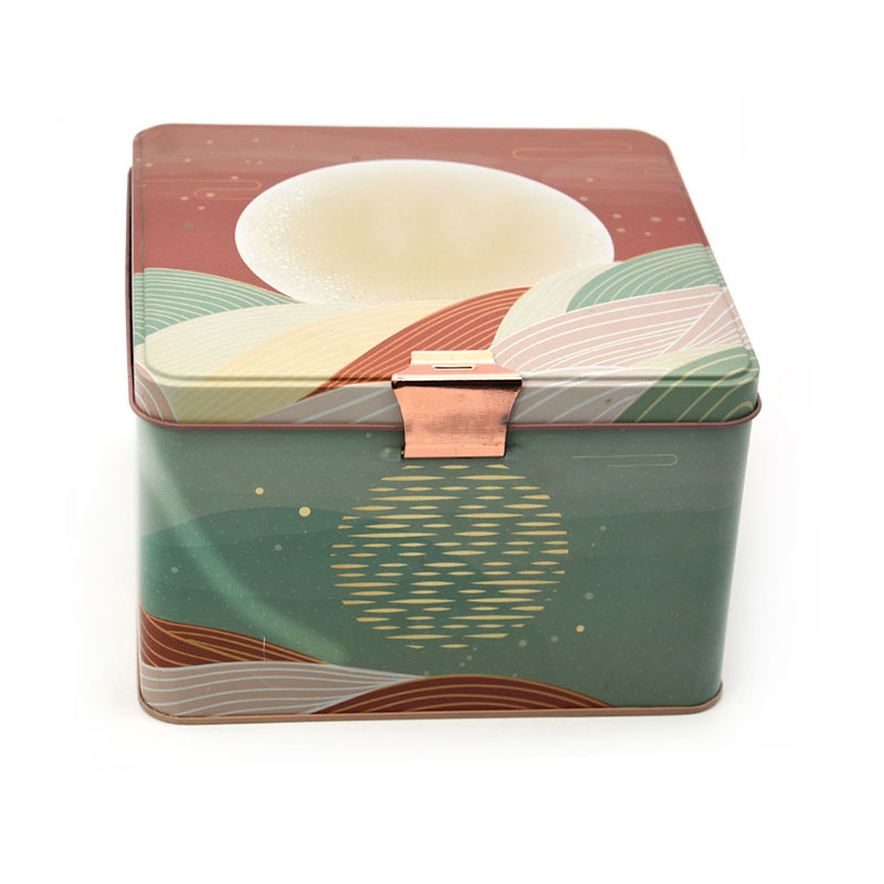 這款帶卡扣四個裝月餅鐵盒采用食品級馬口鐵制成,具有良好的延伸性和氣密性,以及抗壓性;能夠很好的保護內容物。其尺寸是170x170x110mm;材質厚度是0.23mm。月餅鐵盒整體是經過選料、印刷、裁剪、沖壓、包裝等加工工序完成制作,全程QC嚴格檢控生產,合格率達96%;讓您放心使用!同樣我們可以為您提供配件,各種造型的PET、PVC配件,也可以根據你的需求提供禮品袋。