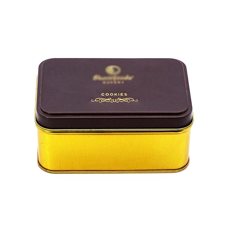此款鉸鏈蓋風味奶香曲奇餅干鐵盒是外國餅干品牌商在我司他別定制的,盒子是鉸鏈蓋、蓋外卷結構;其采用優質馬口鐵制成,材質厚度是0.23mm,具有良好的抗壓性能,能夠防止餅干破碎,串味變質。其尺寸是108x72x50mm;能夠裝260克左右的曲奇餅干。同時適合裝其他餅干或者糖果。如夾心餅干、巧克力餅干、硬糖、軟糖等。