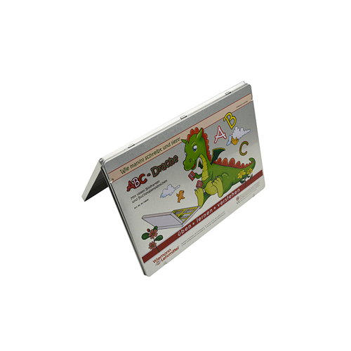 鉸鏈蓋文具鐵盒表面進行單面CMYK四色+專色工藝印刷,盒子內外兩面均涂罩一層亮光油,提升鉸鏈蓋文具鐵盒外觀效果同時,還提升鐵盒表面硬度,起到一種防護的作用。為外表面油料根據不同效果可分為:啞油、珍珠油、皺紋油、珠光油,過油選擇需根據客戶的需求而執行制作,一般是在打樣過程中所確定的。